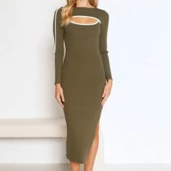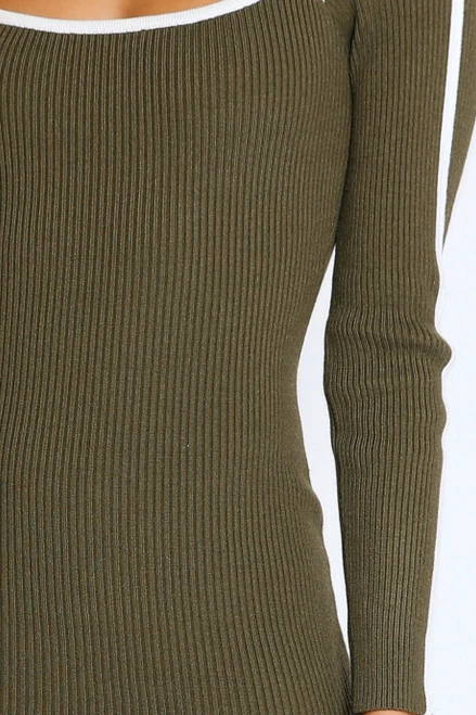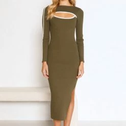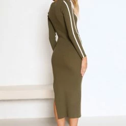 - khaki knit midi dress