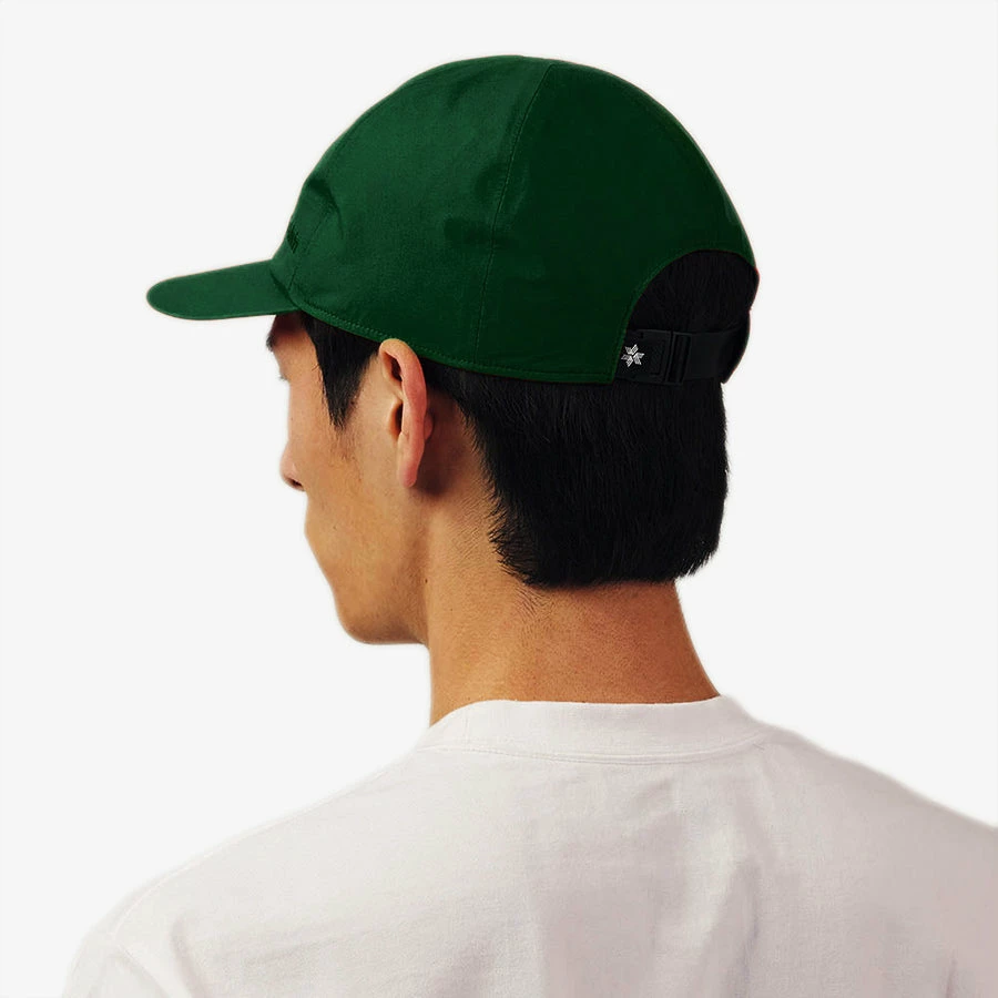 This rain cap is made of 3-layered GORE-TEX PRODUCTS with superior waterproof and moisture-permeability. The 6-panel cap is constructed from GORE-TEX 3L Nylon and finished with a sturdy, black nylon adjustable strap and plastic buckle fastening.