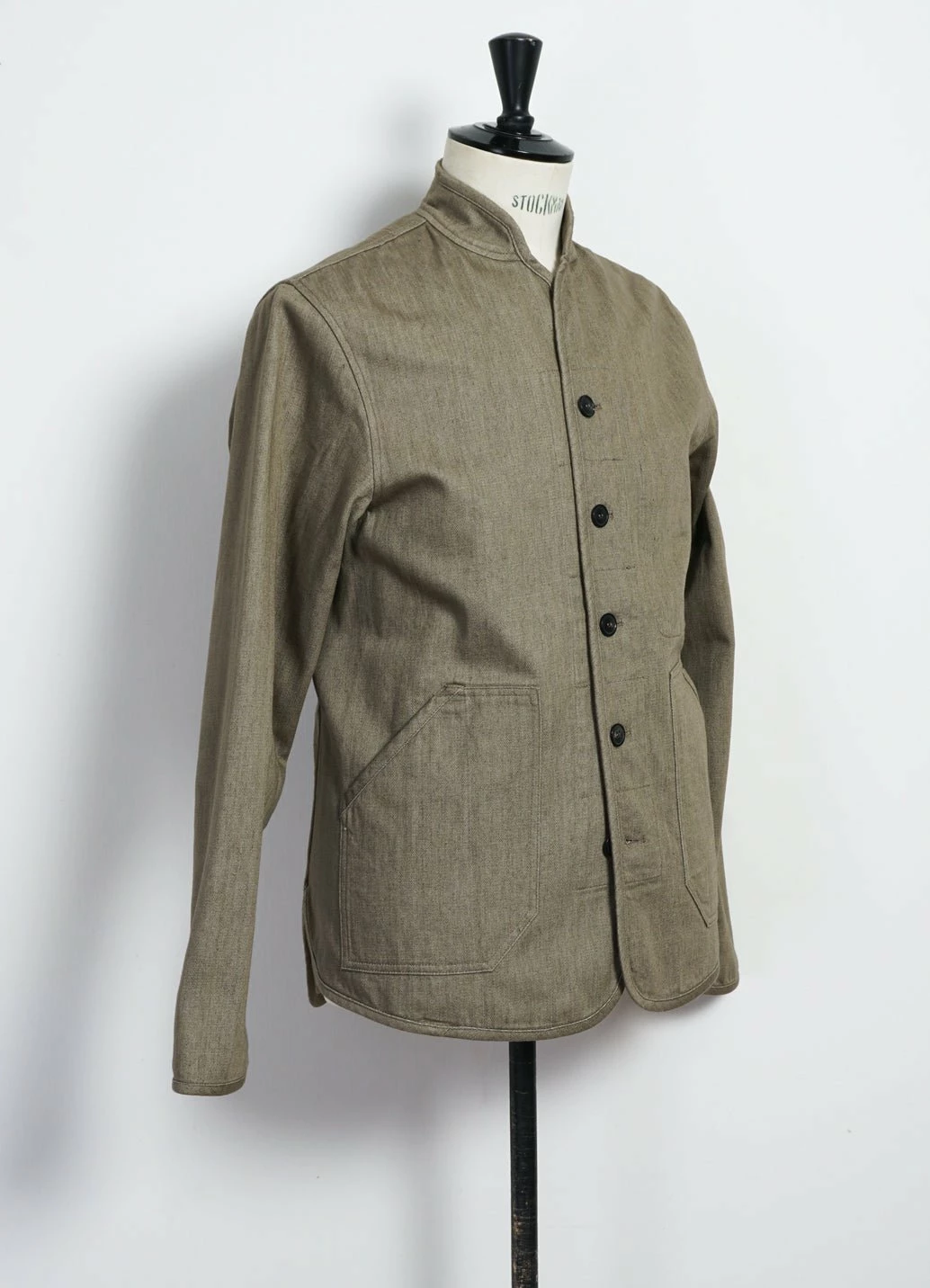 ERLINGÂ is a HANSEN signature item. It is a work wear-inspired jacket and it is quilted with a striped cotton/polyester herringbone lining. The stripes are polyester yarns and stay blue after the garment dye and creates this nice effect on the jackets inside.
