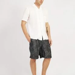 Gilbert is a loose-fitted shorts with a high rise. It’s got single pleat fronts, seam front pockets, paspel back pockets, and a split in the waistband.