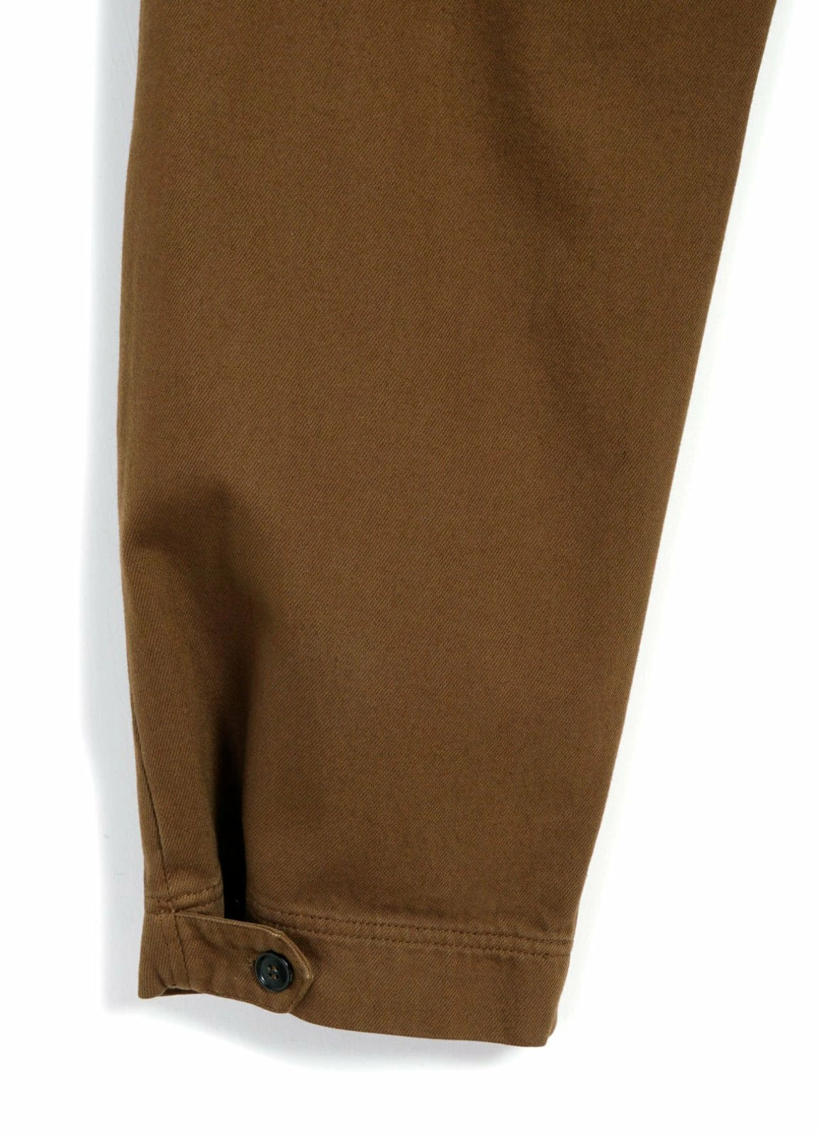 Made of a Bull Twill, a heavy weight twill with a very strong tear resistance. The diagonal weave is very visible and has a uniform appearance.
