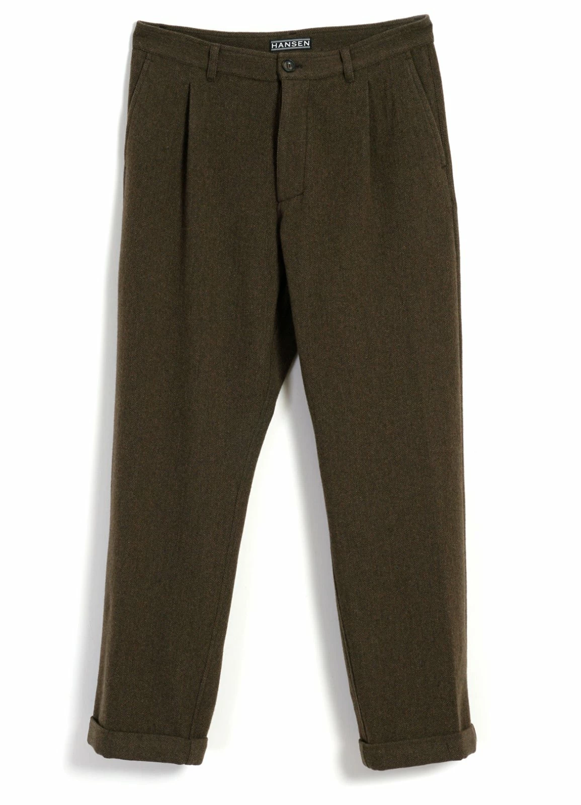Pleated Wide Cut Trousers |  Brown Herringbone