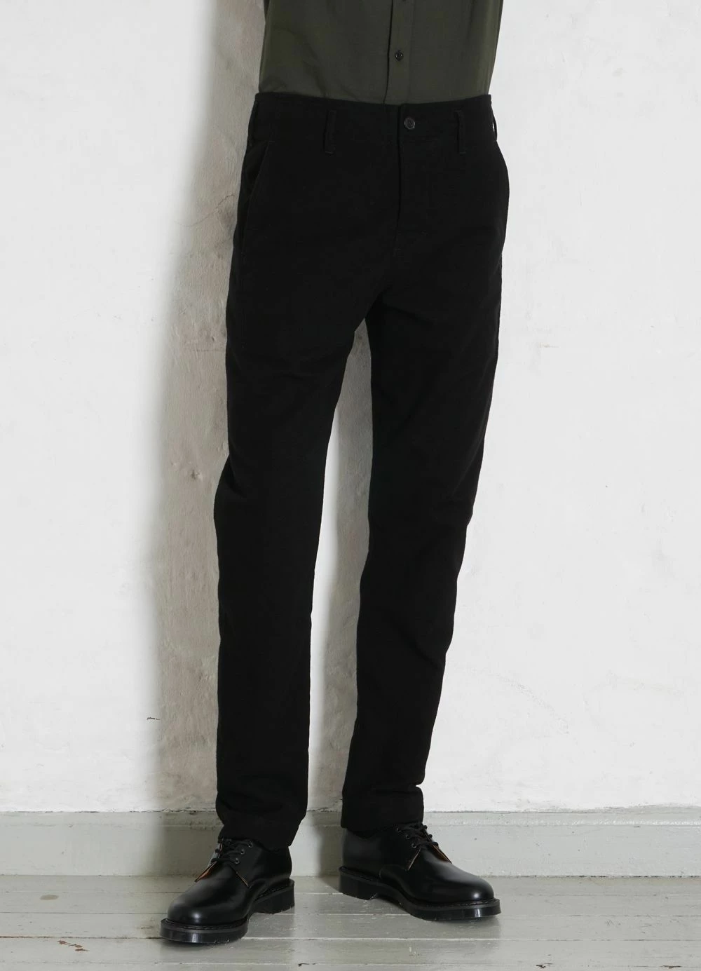 SVENNING is a HANSEN signature item that is characterized by not having side seams and a unique front pocket construction. It has a slim silhouette and the construction makes it fit many body types exceptionally well. The back rise is high and it is cut without a waistband.