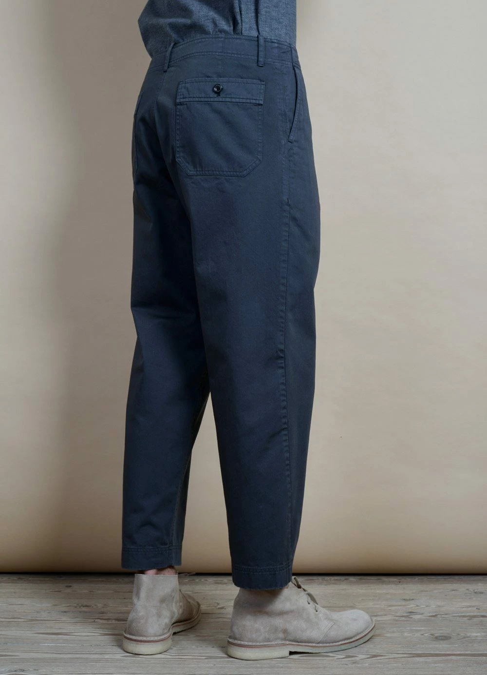 TRYGVE is a newcomer for the SS21 season. It is a pair of loosely fitted, slightly tapered and slightly cropped, trousers. It comes with two slanted front pockets and two patched on back pockets. The side seams are slightly twisted, providing an organic shape from the knee down.