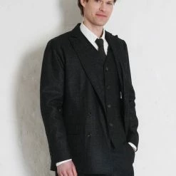 WALTER is a newcomer for AW21. The slender double breasted blazer is contemporary although it has strong references to old world clothing. It comes with a high-cut pointed lapel, flap pockets. It is fully lined with a pin-striped cotton body and viscose sleeves.