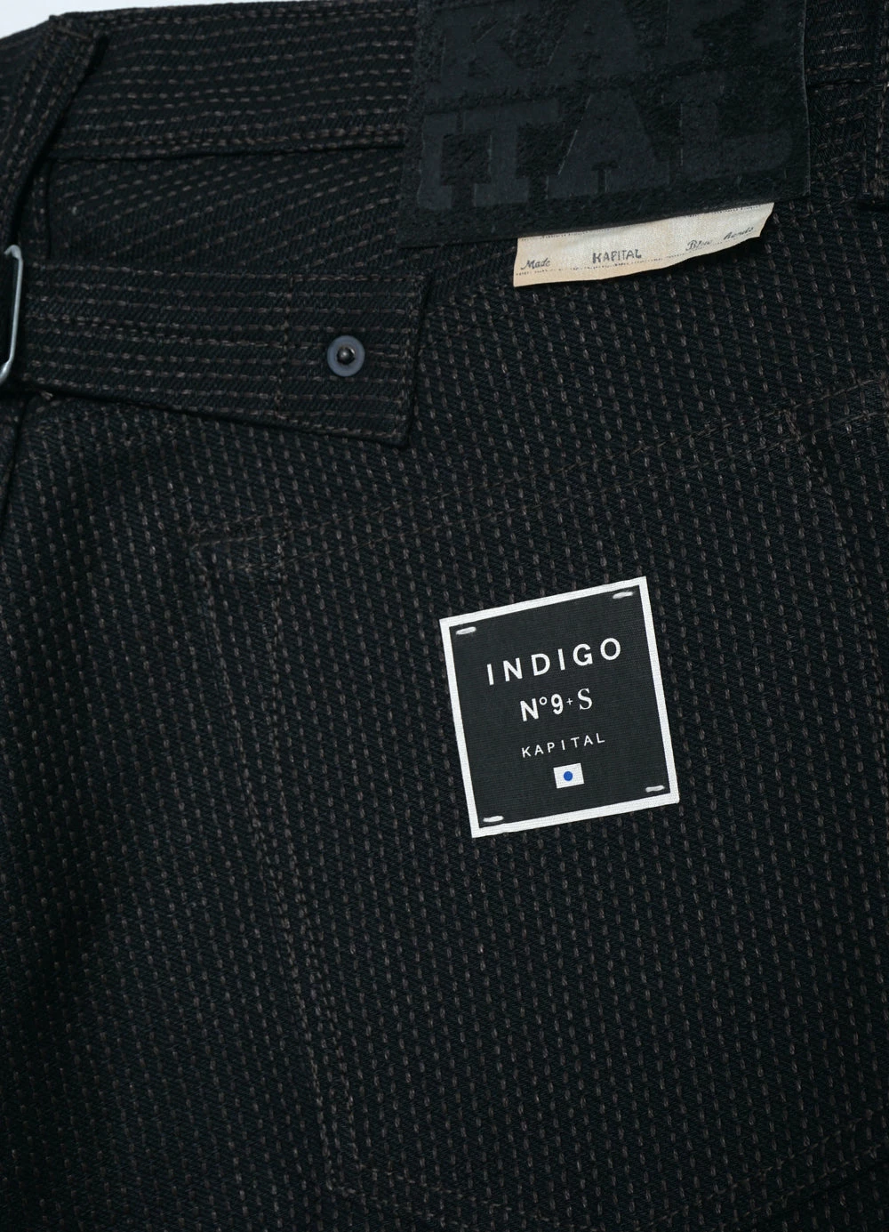 Made in Okayama, Japan at Kapital’s famous “Mitsu” factory. The jeans have gone through a rare natural dying method only practiced in Amami Oshima, Japan. The denim has been dyed with sulfur and the sashiko stitches with Yeddo Hawthorne tree, charcoal and mud.