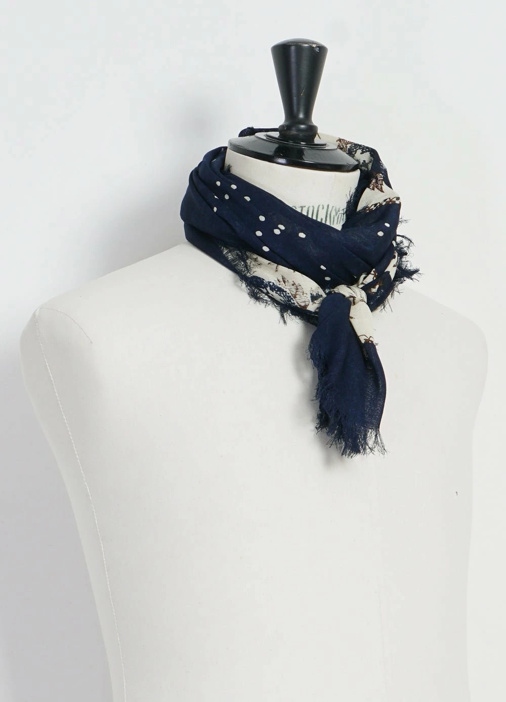 KAPITAL PERSIMMON | Large Bandana Fringe Stole | Navy