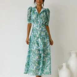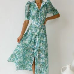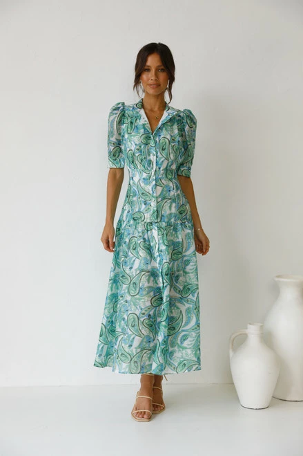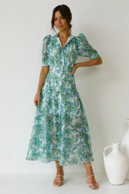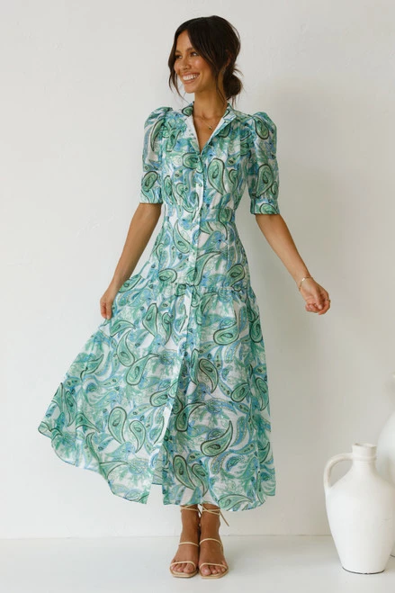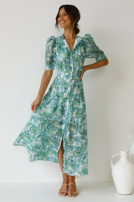 - multi green paisley print dress